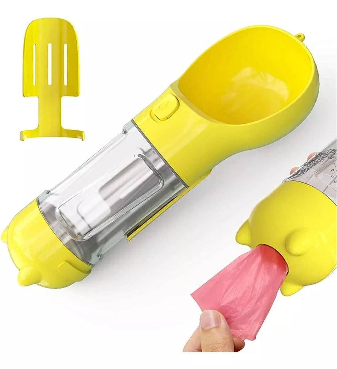Botella Multifuncional Para Mascotas - Depósito de Agua, Comida y Bolsas + Pala